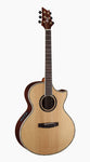 A unique body shape developed exclusively by Cort, the NDX Series guitars feature a 100*125mm full-size body for a big sound, Fishman electronics for superb amplification, and a sharp Florentine cutaway for a modern look as well as easy access to the highest frets. NDX50 features Solid Sitka spruce top, Pau Ferro back and sides, Ovangkol fingerboard, Fishman Presys Blend electronics.