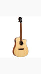 The Tanglewood Strada TS 5 CE delivers professional-grade tone in a versatile cutaway design. Its spruce top paired with mahogany back and sides creates warm, resonant acoustics with excellent projection. The ebony amara fingerboard and bridge ensure durability and refined playability, while the open pore natural satin finish showcases the wood's natural character. Equipped with a Tanglewood TEQ MX preamp for amplified performance and strung with phosphor bronze 12-53 gauge strings, this dreadnought cutaway excels both unplugged and plugged in—ideal for gigging musicians and serious players seeking reliability and tonal depth.