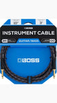 Offering a range of lengths, the Boss BIC-15 Instrument Cable features straight 1/4-inch connectors and a 15 ft./4.5 m length. Other available lengths include 5 ft./1.5 m (BIC-5), 10 ft./3 m (BIC-10), 20 ft./6 m (BIC-20), and 25 ft./7.5 m (BIC-25). With studio-grade, oxygen-free copper core wire and custom-designed connectors with 24K gold-plated contacts, these cables are engineered to deliver superior performance for guitar, bass, and other musical applications. The heavy-duty braided shield ensures ultra-quiet operation and lasting durability, preserving every detail of your tone.
