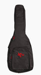 Black heavy duty nylon waterproof yarn. 5mm sponge padded and lined. Reinforced at head-stock and bridge. Full length zip. 1 accessory/music pocket. Cross stitched cushioned carry handle. 2 adjustable shoulder straps with comfort pads. Rubber tread. Toggles to all zips. Embroidered Xtreme logo.