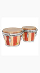 MANO PERCUSSION - Tunable 61⁄2" & 71⁄2" with natural skin heads. Traditional style two tone wood shells. Standard chrome flanged hoops and hardware. Steel band around the base of each shell. Dark and light brown.