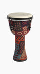 The Mano Percussion 8'' Wrench Tunable Djembe is a lightweight and durable drum. Its cloth-wrapped ABS shell is 15¾" high, and features 4 tunable hook lugs. With a rubber base strip for extra protection, it comes with a bag containing backpack straps and a tuning wrench for convenience. The Clay Tone Finish adds a unique aesthetic to this drum.