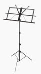 Black plated music stand. Medium frame. Lightweight, 3 sections. Page stays. Tripod base. Screw locking mechanism. Fold-up music desk 29cm (H) x 51cm (W) with adjustable desk angle. Includes carry bag.