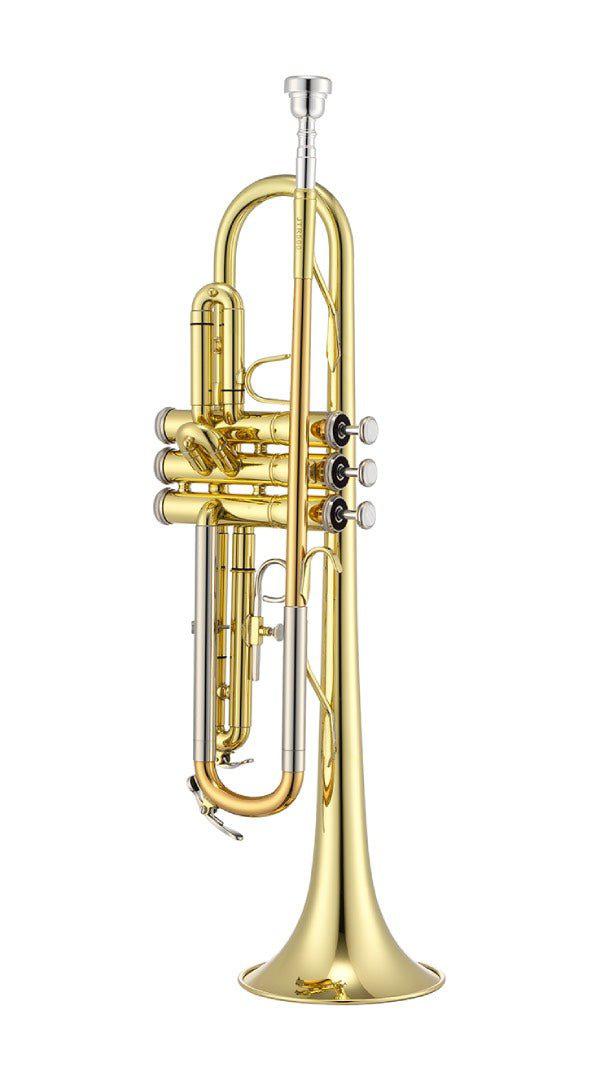 The Jupiter JTR500 standard Bb Trumpet has a lacquered brass body with stainless steel pistons. This free blowing, well-balanced instrument is designed to be comfortable beginners.
