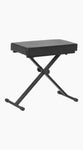 Keyboard stool. Professional heavy duty crossed leg style. 60cm (L) x 30cm (W). Thick padded vinyl seat. Easy to adjust 4 position interlock height adjustment from 55 to 68cm. Black.